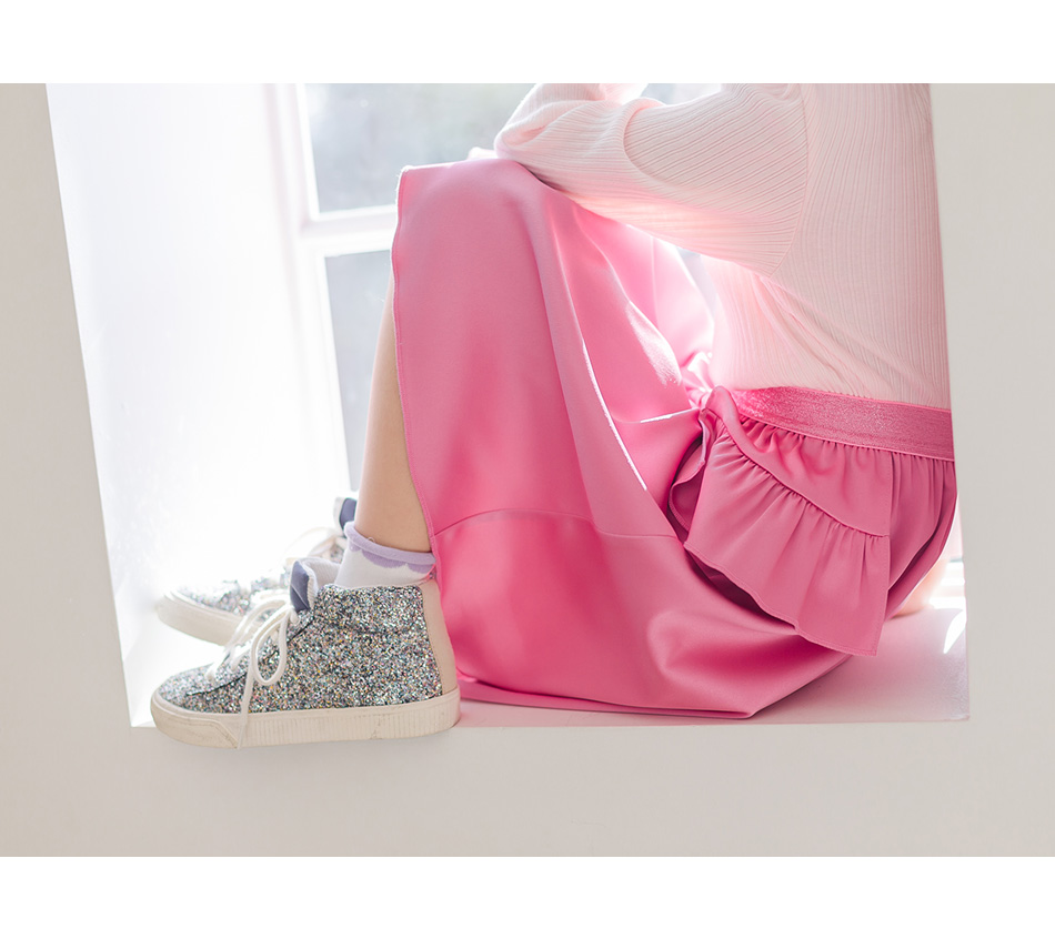 팔랑팔랑 허릿단에서 흩날리는 덧대진 프릴원단으로
