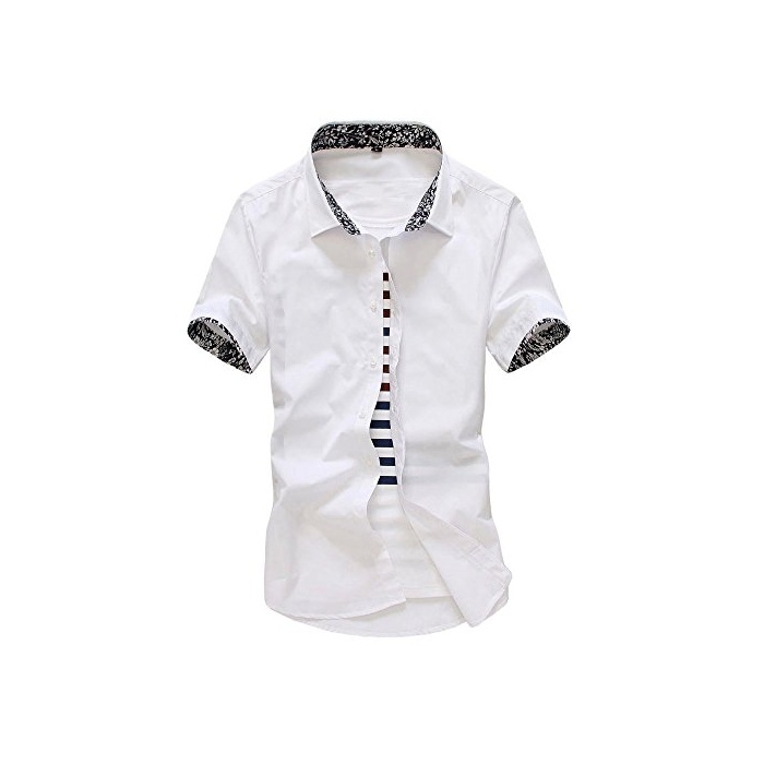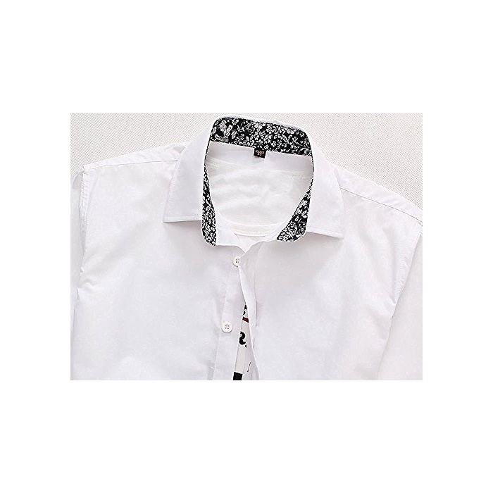 【 ? 】 Smaids×Smile 셔츠 맨즈 톱스 봄과 여름 추 반소매 긴 소매 스타일 슬림 캐주얼 심플 긴 소매 멋쟁이 옷깃 컬러풀 버튼 무늬 (화이트 M)