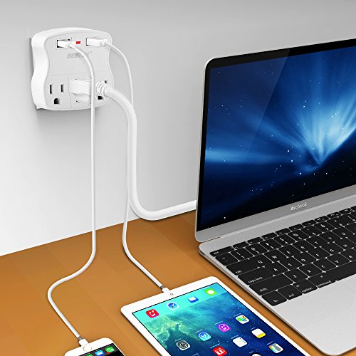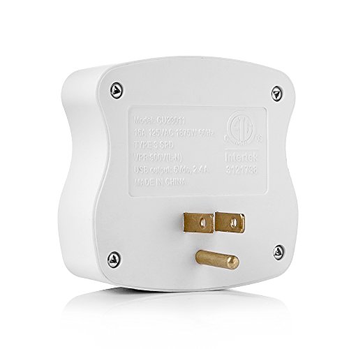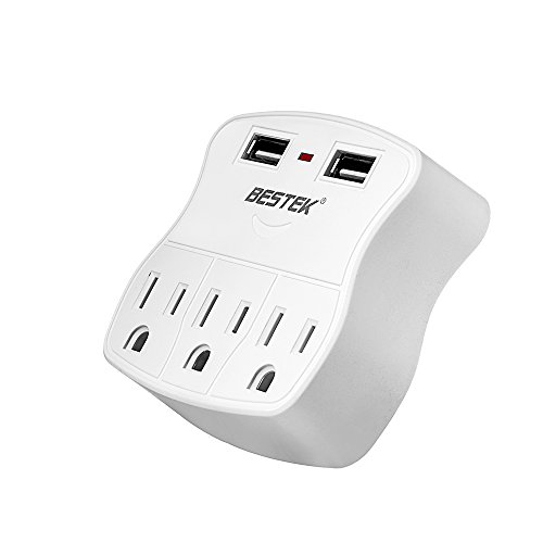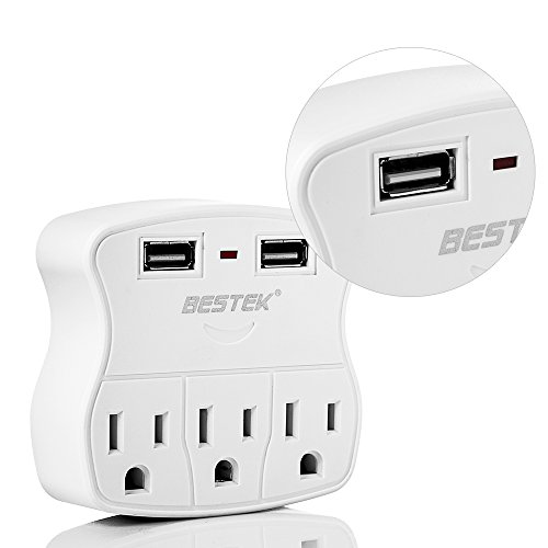 Three surge-protected outlets with two 2.4A USB charging ports to save space and USB adapters