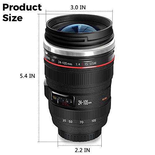 Studio : Xultrashine Publisher : Xultrashine Product Description Xultrashine Self Stirring Camera Lens Coffee Mug Product Features ▷ Self Stirring Cup with 11oz / 300ml capacity ▷ Realistic Lens Cover Top for viewing and drinking on the go ▷ 1:1 replica of the Canon Lens Model EF 24-105mm f / 4.0L USM, perfect gift for photography enthusiast ▷ Made of food grade stainless steel and PVC plastic, both BPA and phthalate free, safe for any beverage