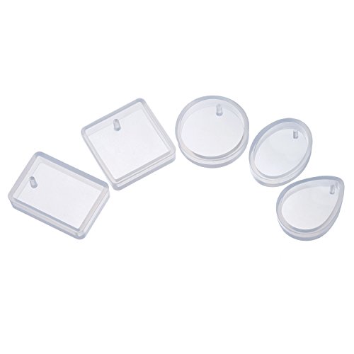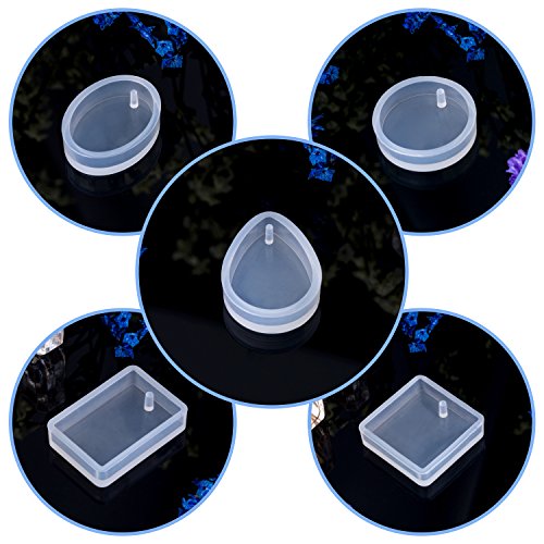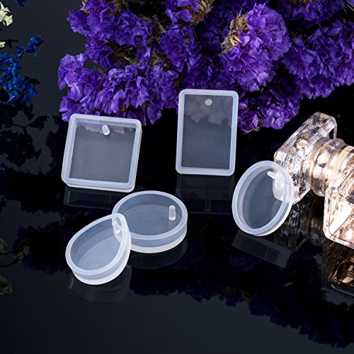 Mtlee 5 Shapes Silicone Resin Mould Pendant Jewellery Molds with Hanging Hole for DIY Craft Making, Semi-transparent