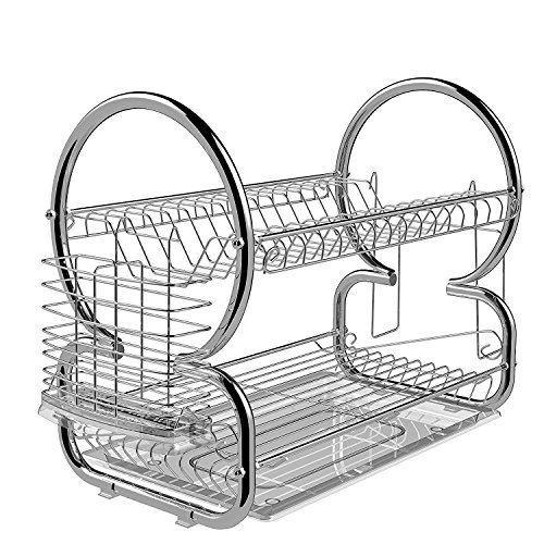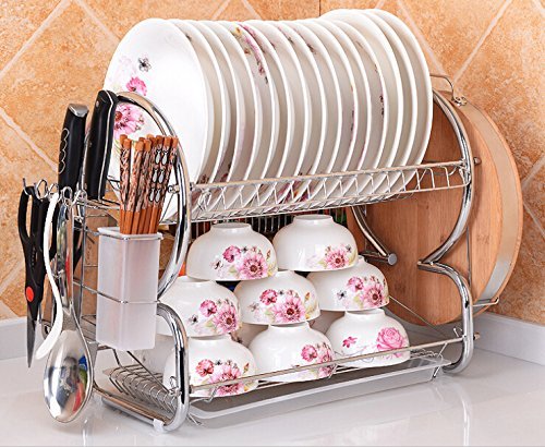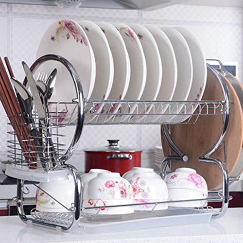 2 Tier Heavy Duty Stainless Steel Drying Rack Non-rust Holder Dish Rack Holder Set with Accessory Drain Board for Spoon Dish Cup Chopsticks for Home Kitchen[ARRIVE in 3-7 DAYS]