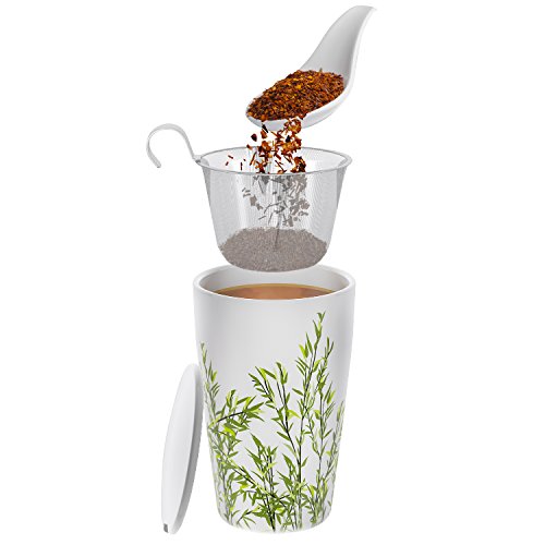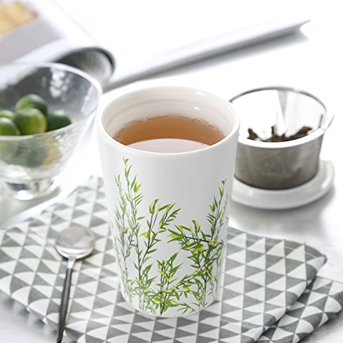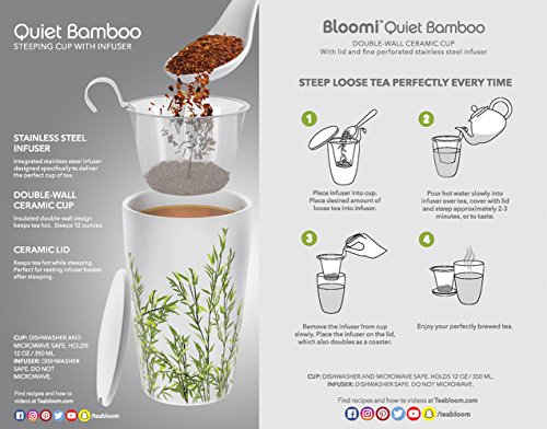 Teabloom BLOOMI Single Cup Loose Tea Brewing System makes the perfect cup of tea every single time. It has the innovative built-in features to let even the complete novice enjoy wonderful, full flavored tea. The ceramic cup has double walls that give you natural and very effective insulation. The cup keeps your drink hot or cold longer using this exclusive design. Beautiful Floral Painted Mug features a delightful, delicate design with a hint of Asian artistic tradition. The look goes well with any decor and color combinations. It will fit well with your other cups giving you a pleasing, attractive collection you will use over and over again. Includes Integrated Stainless Steel Infuser that lets you get the full flavor of your favorite teas. Less waste as you can use even the smallest tea leaves. Prevents "dusty" tea and gives you a premium experience every time with less effort and mess. This infuser is easy to wash and won't rust, corrode, or harbor bacteria. Ceramic Lid Doubles as Coaster is built just right so you can rest the infuser basket on the lid after steeping. Mug and lid can be used safely in the microwave, and all parts of this product are dishwasher-safe. Note the pressure adjustment plug at the bottom that equalizes the air pressure between the two layers. 100% Money Back Guarantee ensures this will be your best bet for a no-risk purchase. Many customers love this mug so much they return to buy several more. This makes a much appreciated gift for friends, family, and co-workers. Buy 2 or more Teabloom Products and receive 10% OFF with coupon code: TEABLOOM. We recommend bundling this mug with the Teabloom Flowering Teas (2-pack) to make this gift even more special and memorable. 0 |