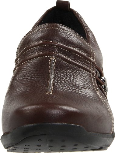 This women's leather walking shoe by Clarks WAVE® features an innovative curved rocker sole that conserves energy, absorbs shock and cushions the joints to enhance the walking experience. The Clarks Wave Skip has a slip-on style in supple black leather with a padded topline and removable OrthoLite® footbed for added comfort.