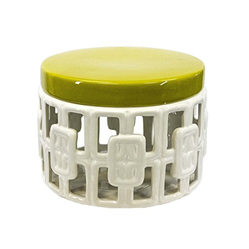 Benzara Decorative Ceramic Covered Jar, Yellow/White