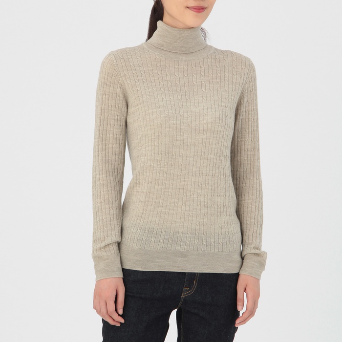 Muji 목의지쿠치구를 파악(압류)했다케이블무늬 씻을 수 있는 터틀넥 부인S오프백 편의점 수취가
