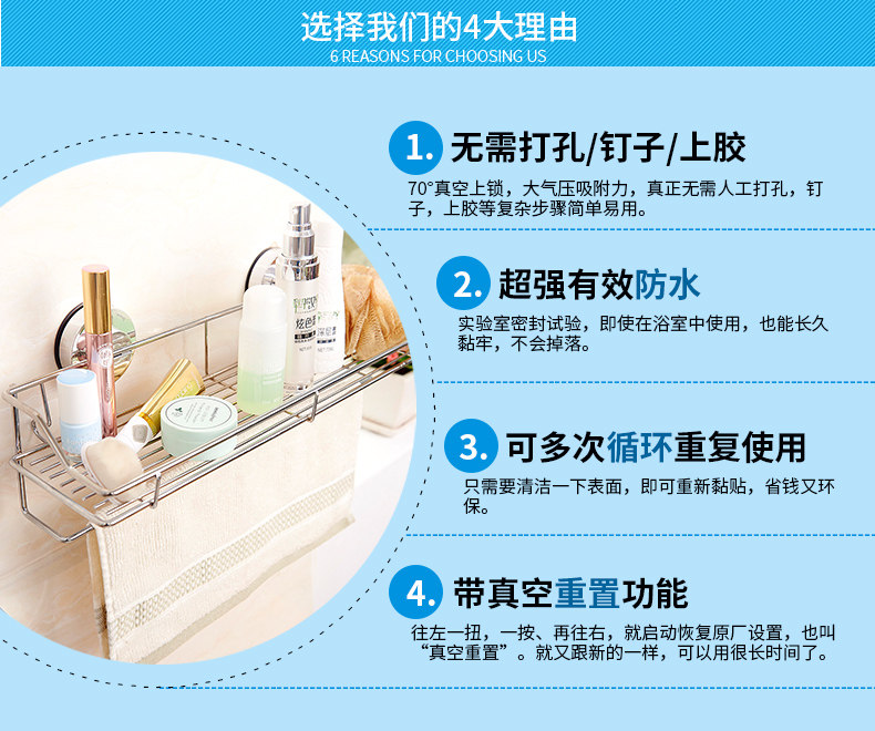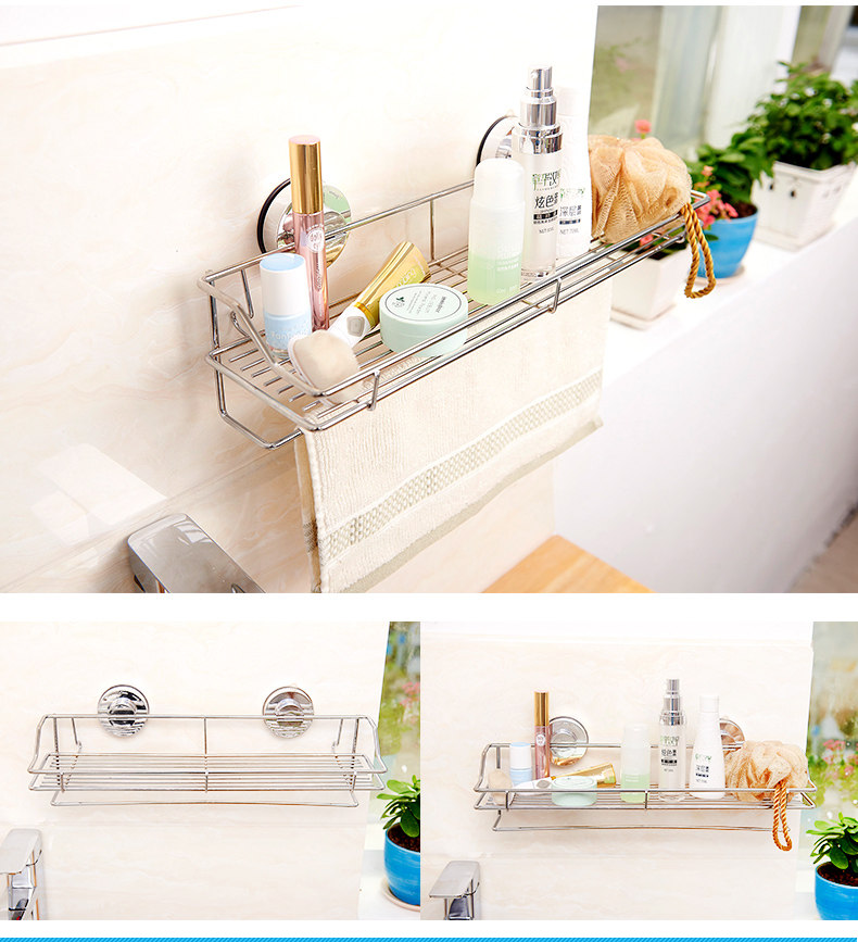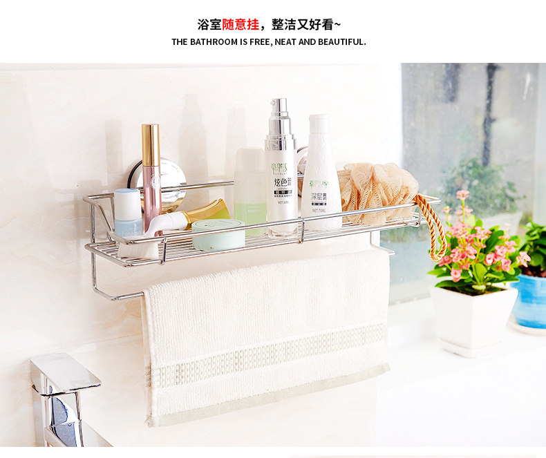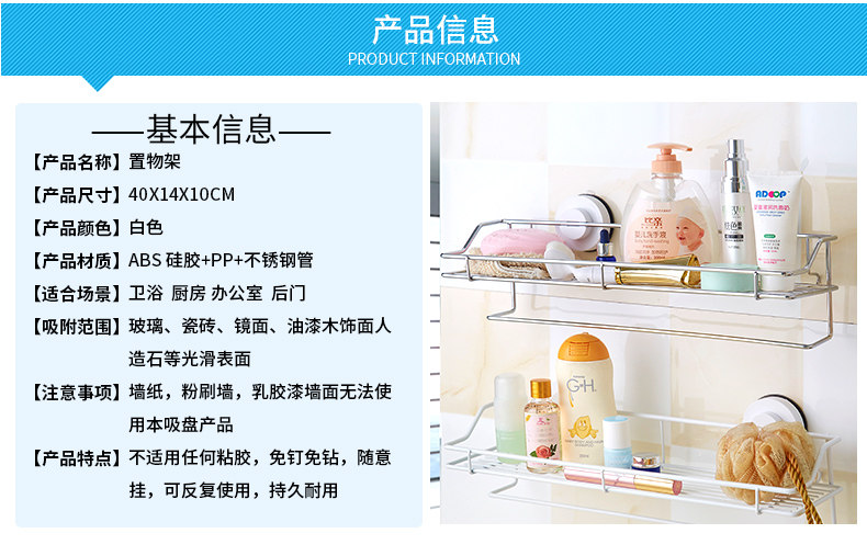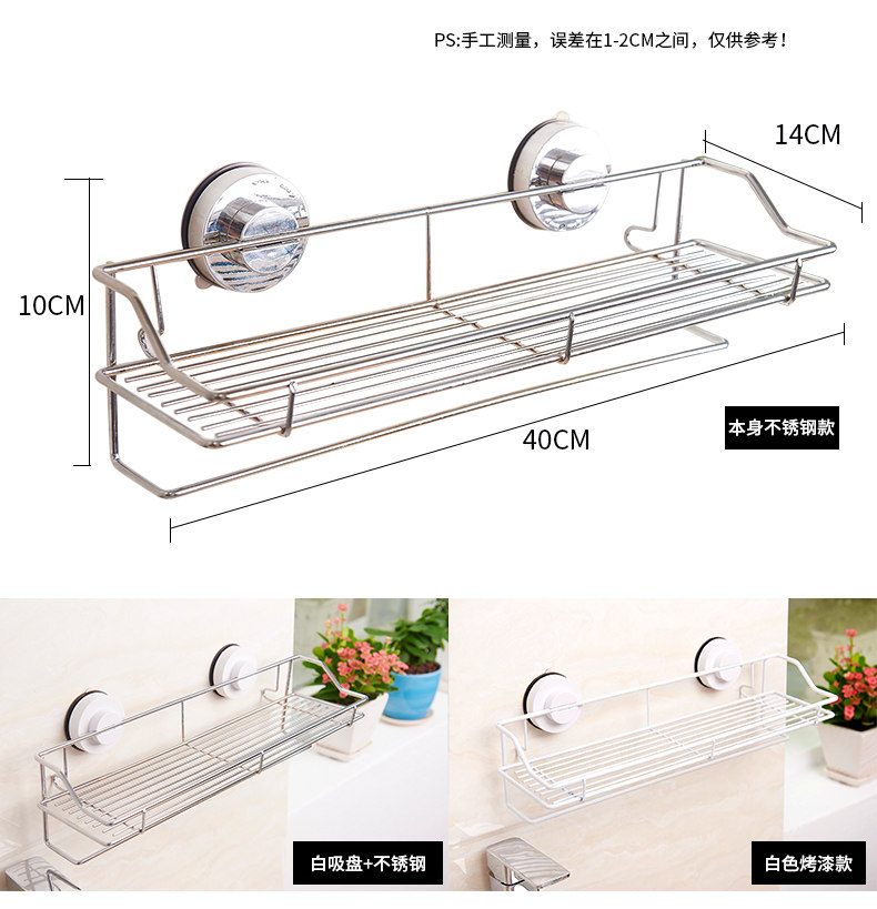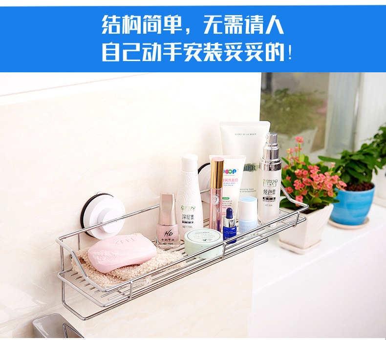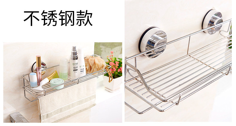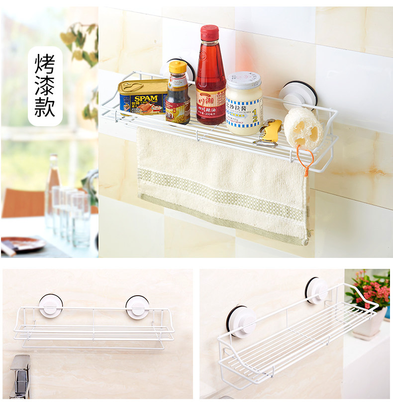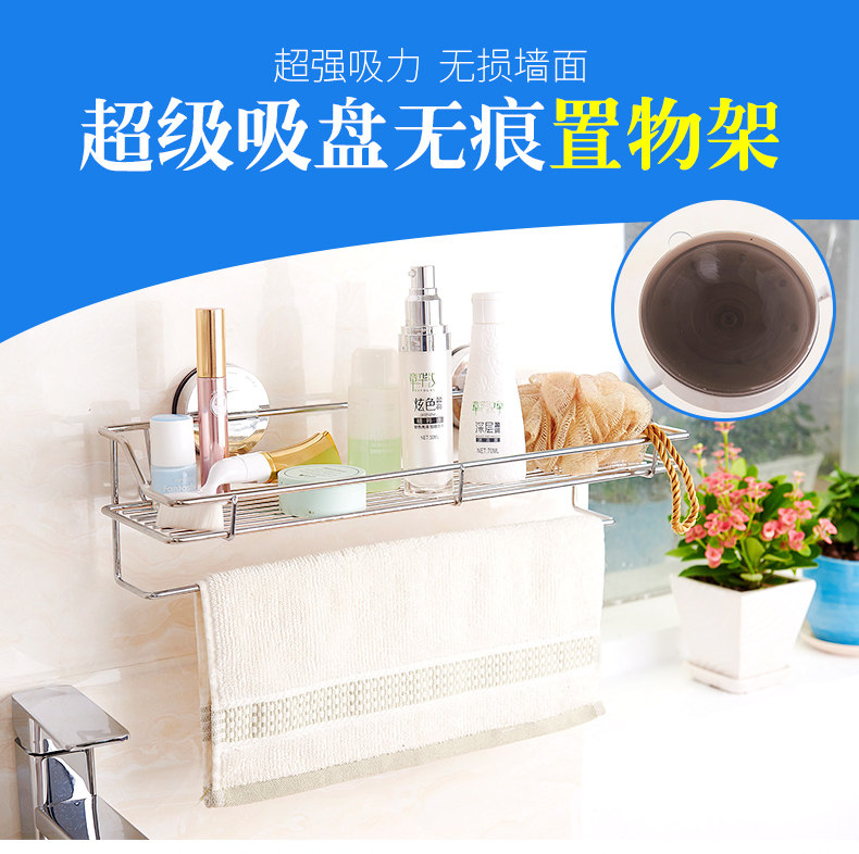 󰄬免打孔吸盘厨房置物架壁挂卫生间不锈钢收纳架墙上多功能调味料架