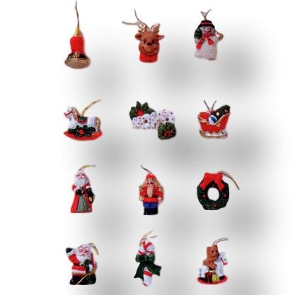 12 Piece Mini Christmas Tree Ornament Miniature Collection - Assorted Styles