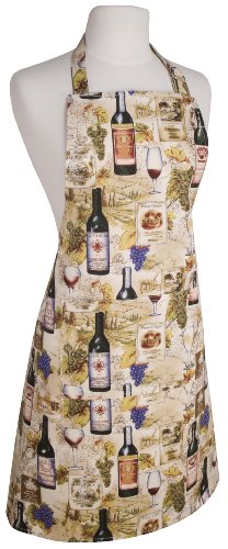 Now Designs Basic Cotton Kitchen Chef's Apron, Wine Label Print