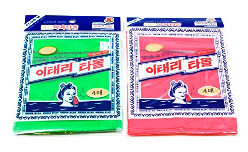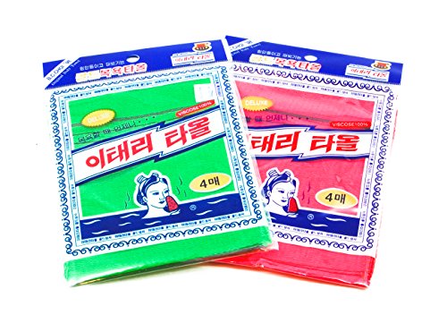8 pcs Asian Exfoliating Bath Washcloth - Red & Green