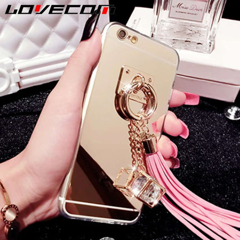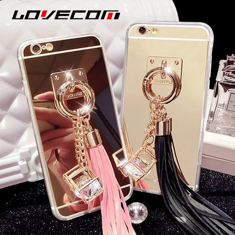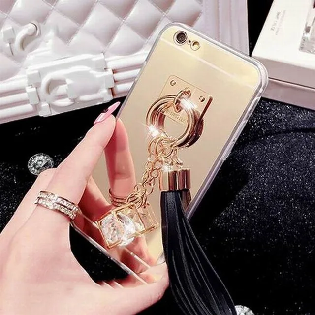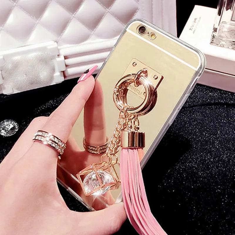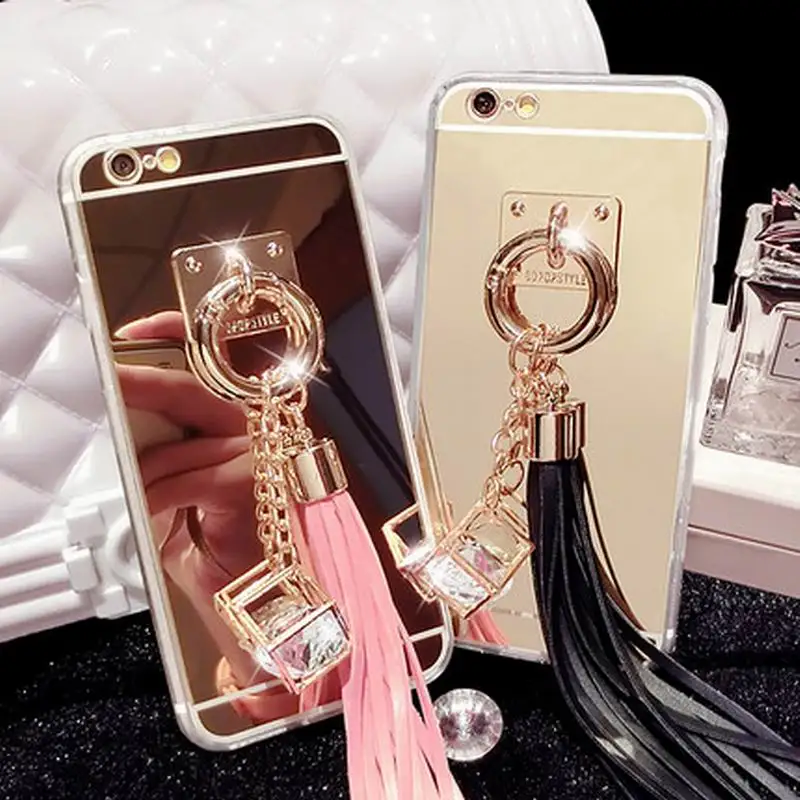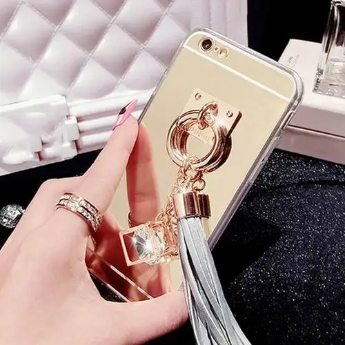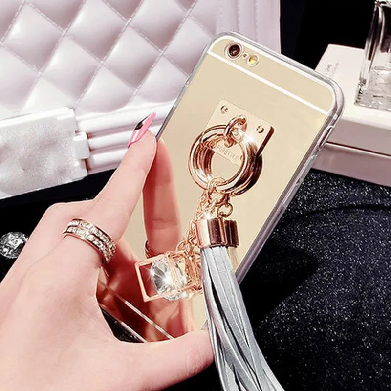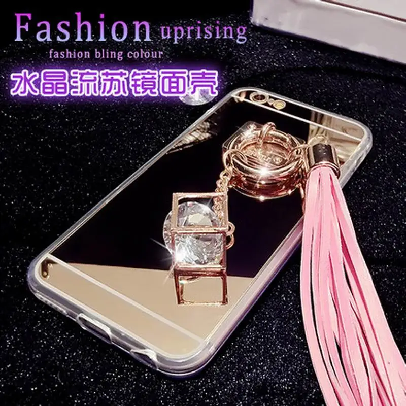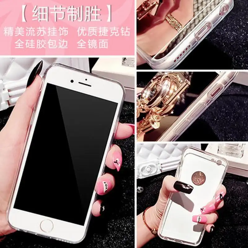 Feature:DIY Crystal Pendant Tassel Metal Buckle Mirror Soft TPU Back Cover