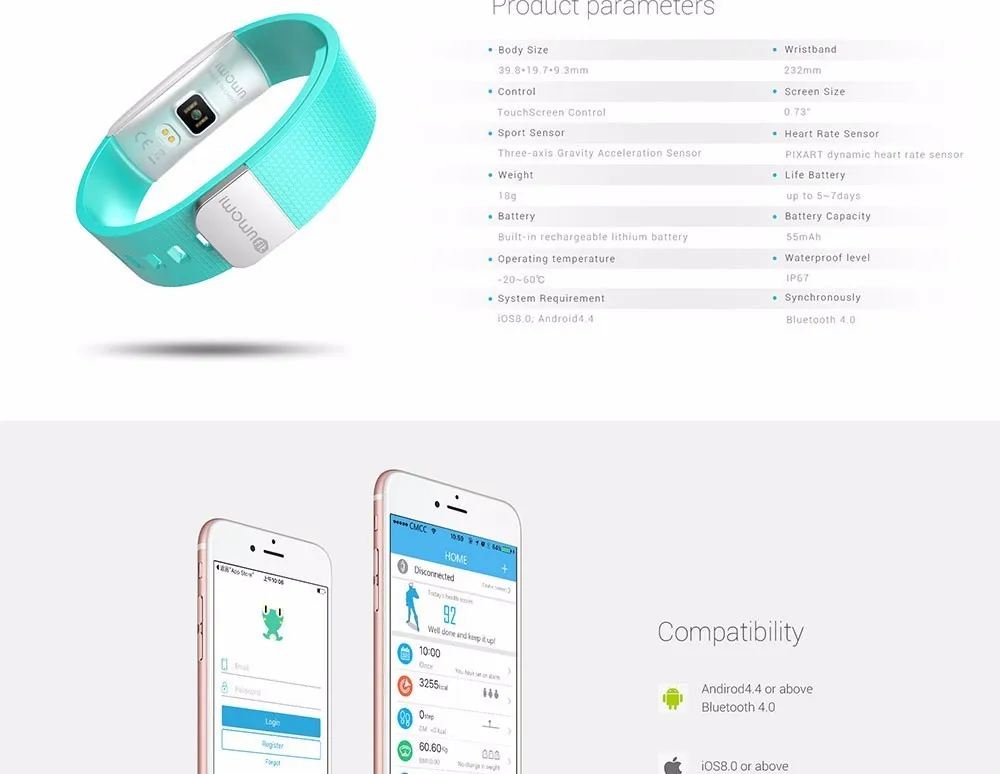 Function:Remote Control,Passometer,Sleep Tracker,Fitness Tracker,Push Message,Message Reminder,Call Reminder