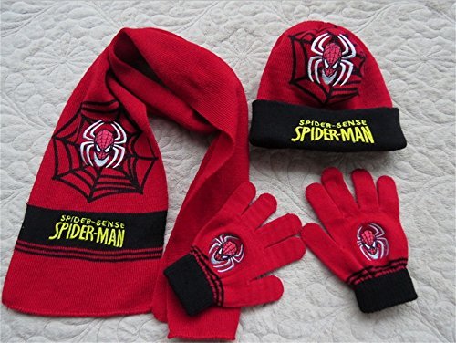 • Spiderman hat, scarf and gloves set.