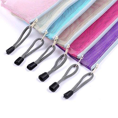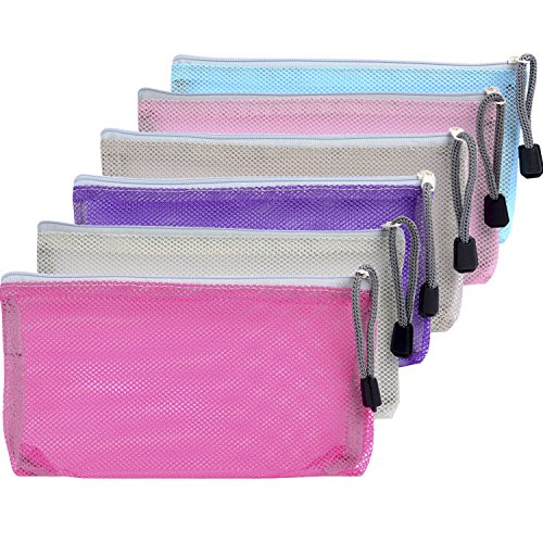 Mudder 6 Pieces Travel Zipper Mesh Bag Makeup Zip Bag Mesh Pouch Organizer for Toiletry and Cosmetics, 6 Colors