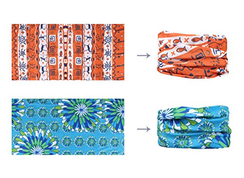 - Multifunctional – The 12-in-1 magic scarf can be used as neck warmer, face mask, beanie ,balaclava, sweatband, Bandana, headwear, armband, wristband, handkerchief etc. You can follow our explanatory drawing to choose the way you like to wear in different occasion.