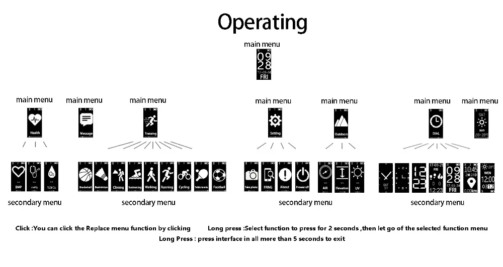 Function:Message Reminder,24 hour instruction,Passometer,Alarm Clock,Fitness Tracker,Permanent Calendar,Call Reminder,Sleep Tracker,Heart Rate Tracker