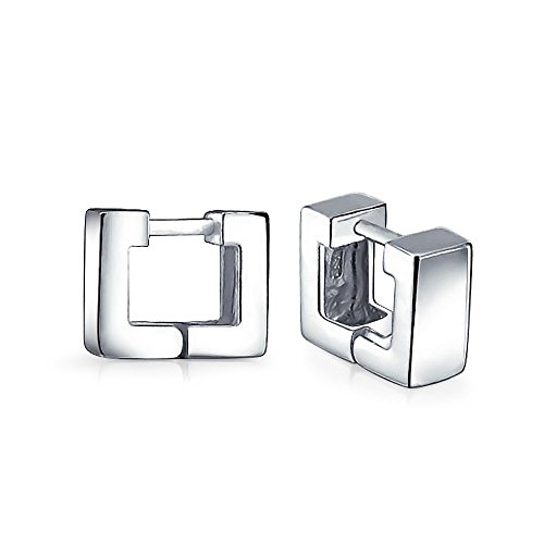 Polished and flair is exactly what these .925 sterling silver square huggies represent. This pair of hoop earrings have a great modern look that will always be in style. Our sterling silver huggie earrings look sensational whether you plan on going casual or for a more dressed up look. These chunk square earrings are 9mm x 11mm, and hinged with a notched post for a snug yet comfortable fit. A quality crafted clasp will keep these beauties securely in place. Mini hoop earrings with a slight twist to the classic look. Buy these hip hoop earrings today and start your day off with a cool touch.Feature