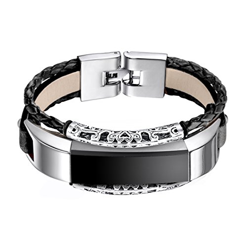 For Fitbit Alta and Alta HR Bands, bayite Leather Bands Metal Clasp Fitbit Alta Replacement Accessory Bracelet Black Brown Pink Large Small