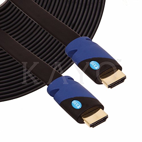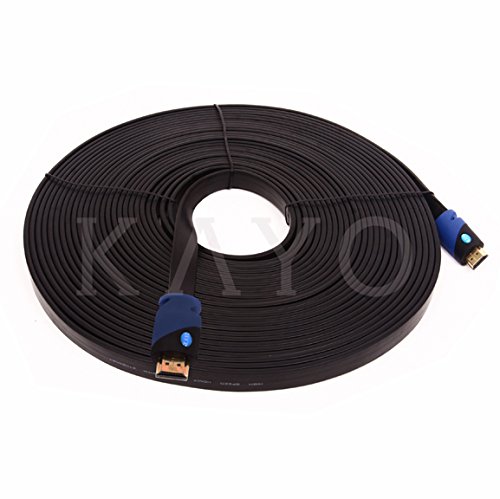 KAYO High Speed HDMI FLAT Cable 50 Feet -HDMI 2.0 with Ethernet, Supports 3D & Audio Return Channel, Gold Plated Connectors, FULL HD (Latest VERSION)-50 Feet with Soft PVC Sleeve