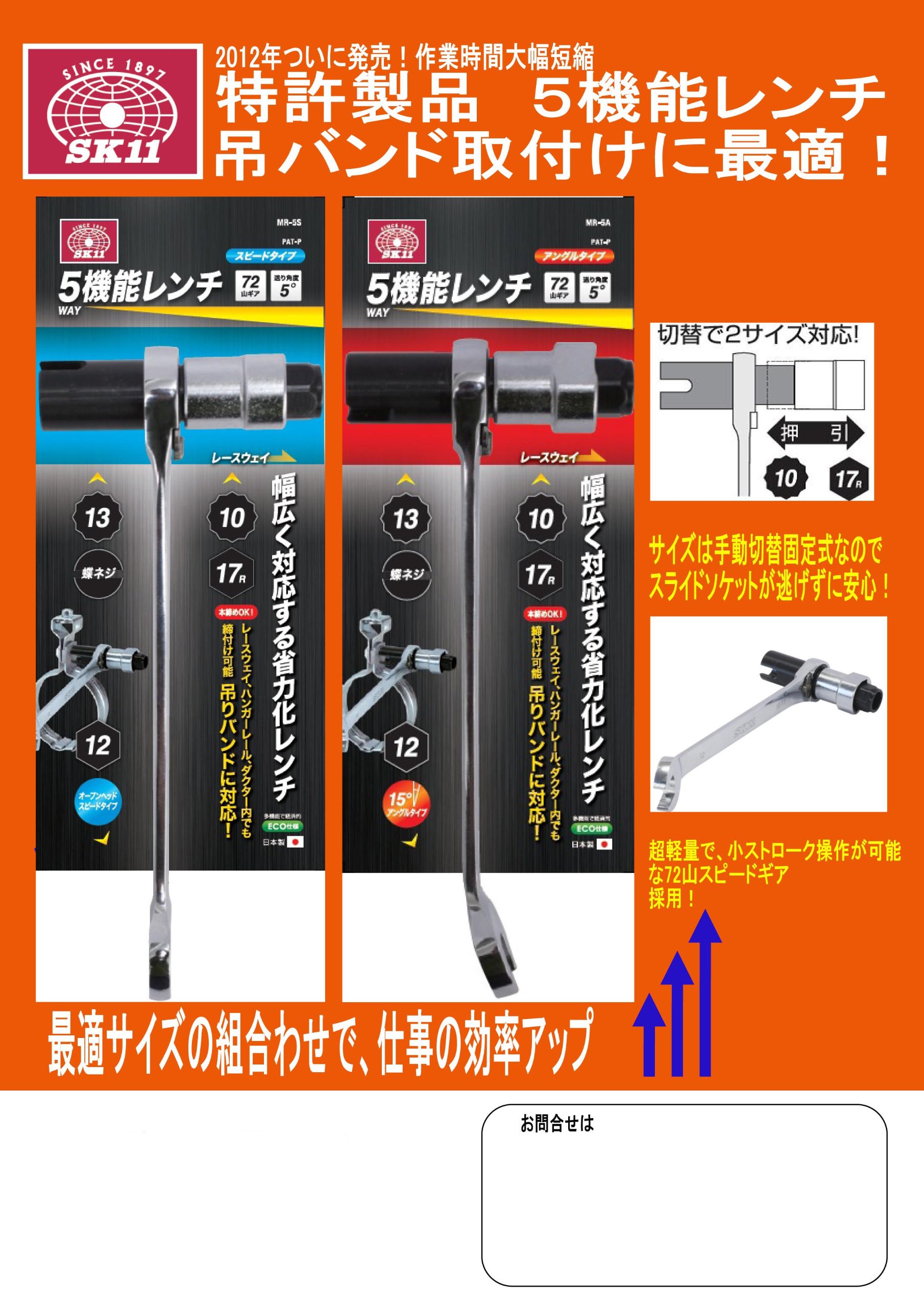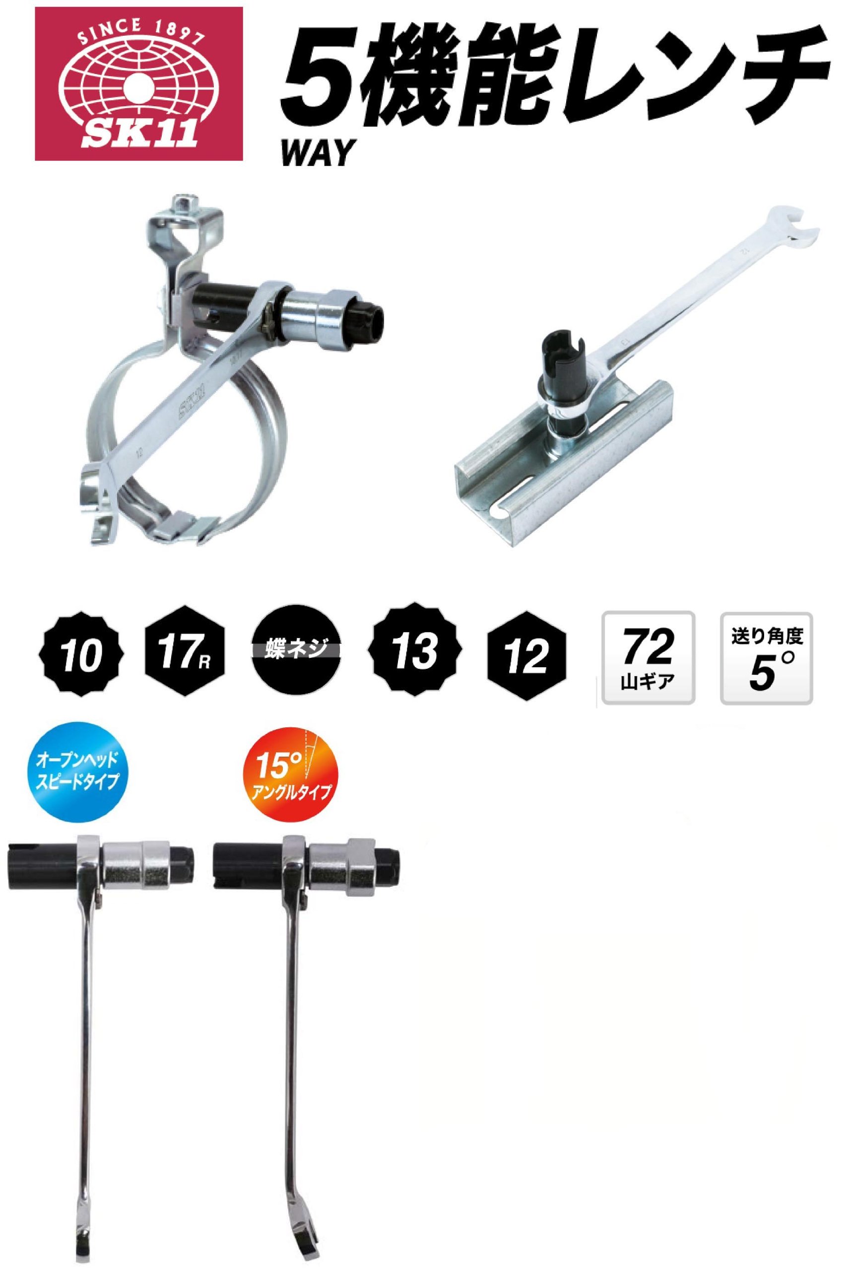 Conveniently covering bolt and nut size necessary for facility construction Wrench that is most convenient and labor saving <BR> Wide range of support for piping, electric path support and equipment work <BR> <BR> <BR> <BR> <