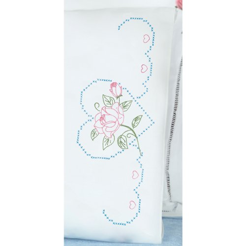 Jack Dempsey Stamped Pillowcase w/White Perle Edge 2-Pack: Rose And Heart