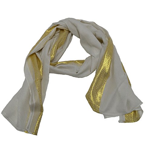 Product DescriptionOur Gold Embroidered Chevron Soft Scarf Shawl is available in 2 colors: Grey White. Dimensions in Inches: 68 x 340
