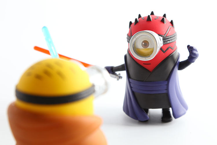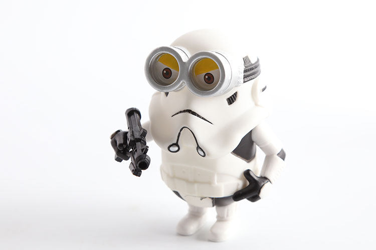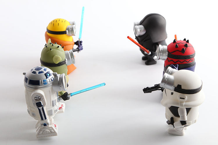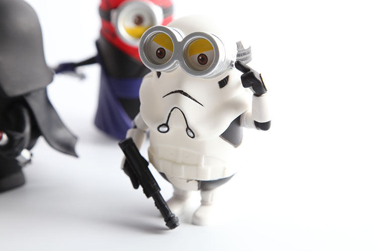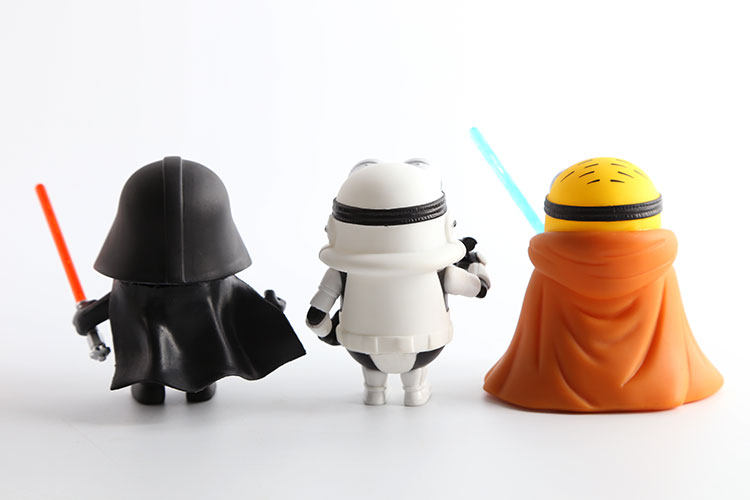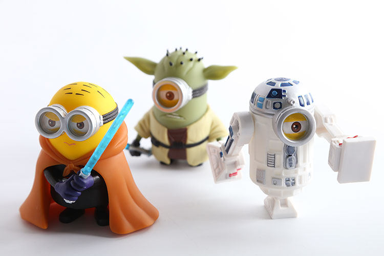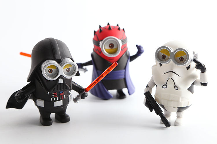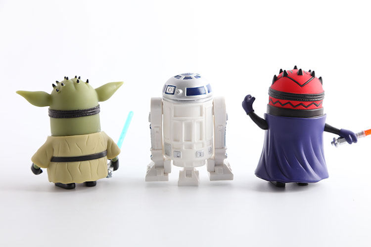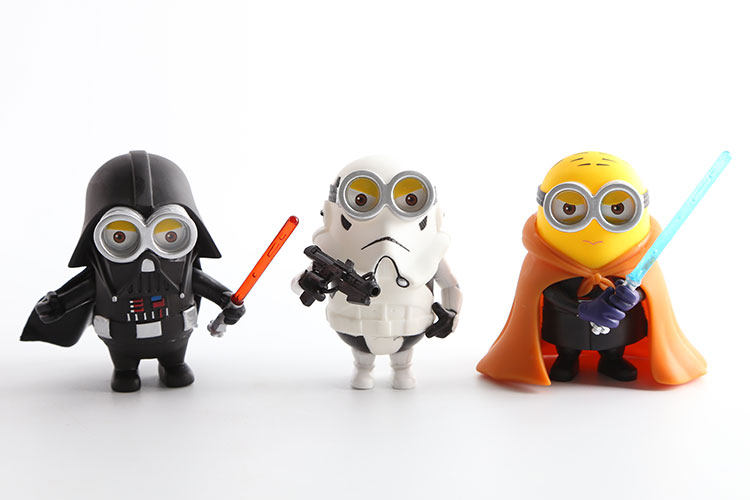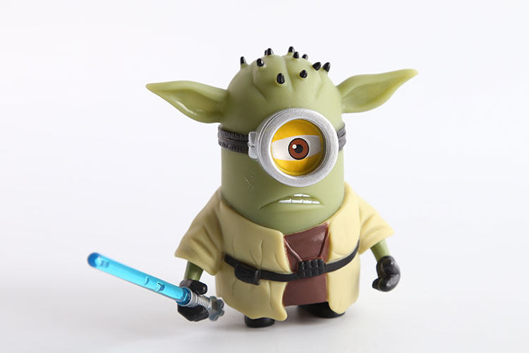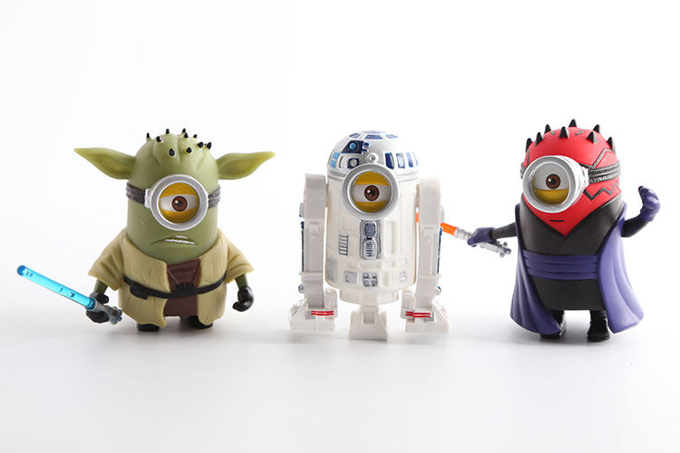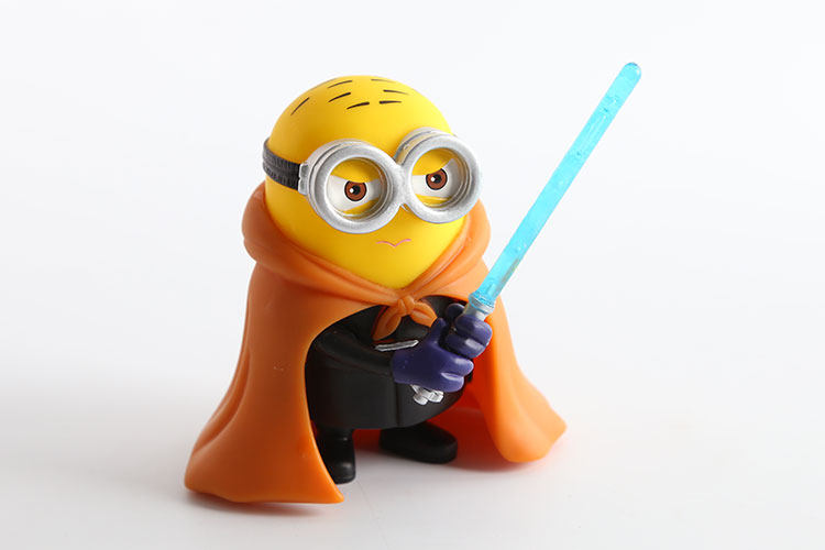 Baby description: Minions small yellow people COS black and white soldiers turned Star Wars Jedi toy doll ornaments hand to doset out in bulk!