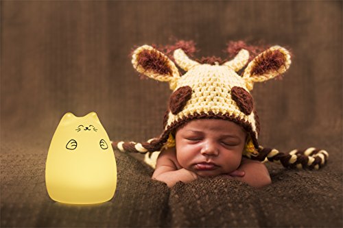 2 Light Modes: This UOR Silicone LED Night Light has 2 lights mode, 7 single colors mode and 7-color breathing light mode (Changed Colors Every 3 Seconds in Turn), making it a romantic sweet nursery baby night lamp companion. Pretty sensitive vibration sensor allows you to control lights at will.