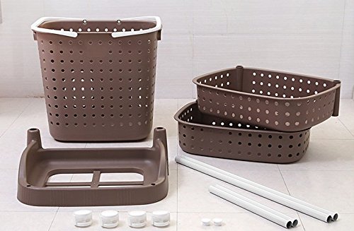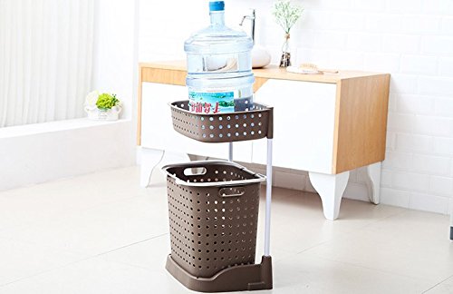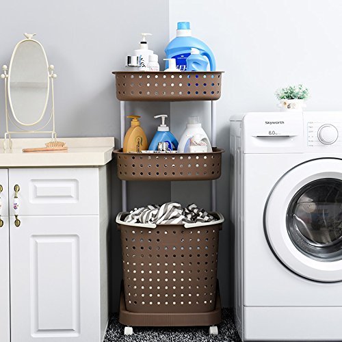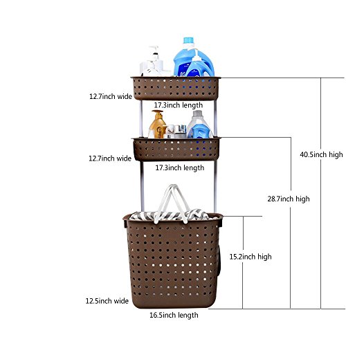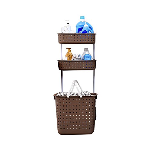 Bathroom rack and laundry basket - 8th team(2017 New Product)Portable three-tier shelving can place Wash bath things,Dirty clothes and other things (coffee)