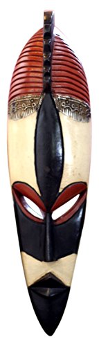 NOVICA Decorative Large Sese Wood and Brass Mask, White 'Lead A Good Life'