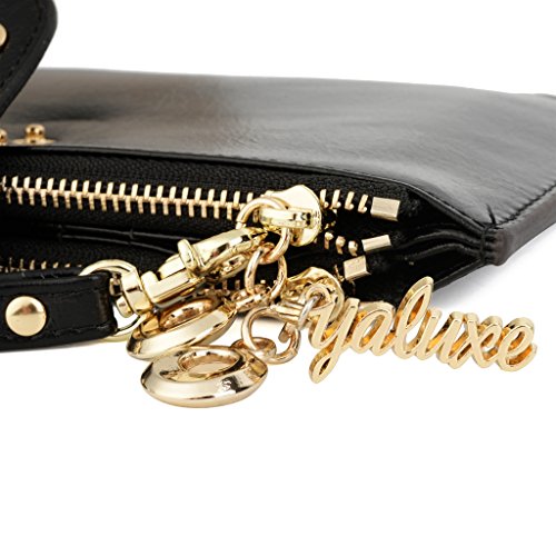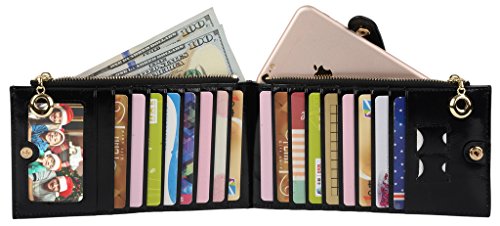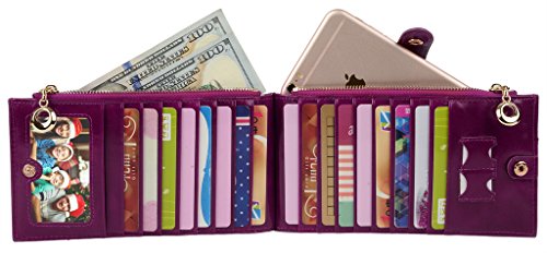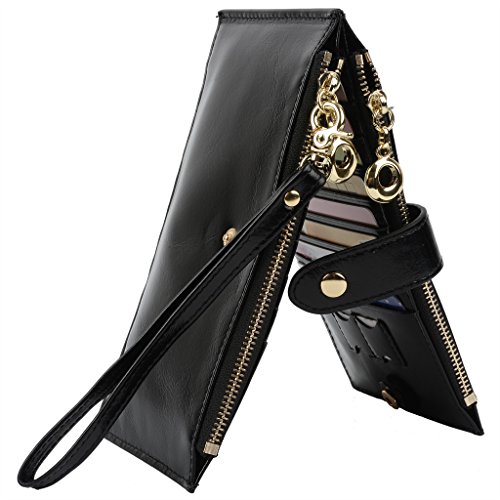 -. Binding : Apparel -. Brand : YALUXE -. Department : womens -. Feature : Genuine Leather with waxing and oiling finish,luxury looking and feel.Fit up to iPhone6/6s,Samsung Galaxy S4/5/6. / Gold-color hardware, heavy duty zipper and detailed stitching brightens up the wallet.Thin,yet funcitonal. / 18 card slots including an ID WINDOW and two zipper pockets for cash/change/folded bills.Clear layout with a snap keeping your property safe. / Come in a cute Gift Box and ready to be gift for family and friends. / Dimensions: 7.28" x 4.13" -. ProductGroup : Apparel -. ProductTypeName : ACCESSORY -. Size : Large -. Title : YALUXE Women's Multi Credit Card Case Leather Wallet with Wrist Strap