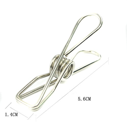 BESTCYC Solid Stainless Steel Wire Clips Outdoor Clothesline Clothespin Metal Socks Clips, Set of 30Pcs
