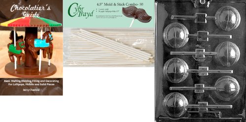 Cybrtrayd 'Basketball Lolly 3D' Sports Chocolate Candy Mold with 50 4.5-Inch Lollipop Sticks and Chocolatier's Guide