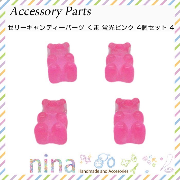 ■商品名:ゼリーキャンディーパーツ くま 蛍光ピンク 4個セット