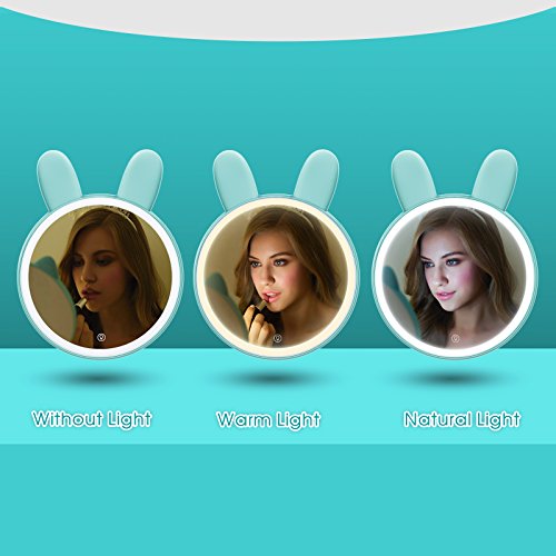 RETECK Makeup Mirror with Lights, Led Light Touch Screen Lighted Vanity Mirror with 3X magnification with Cool Warm light Rabbit,Mint