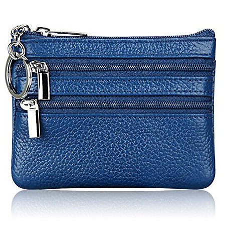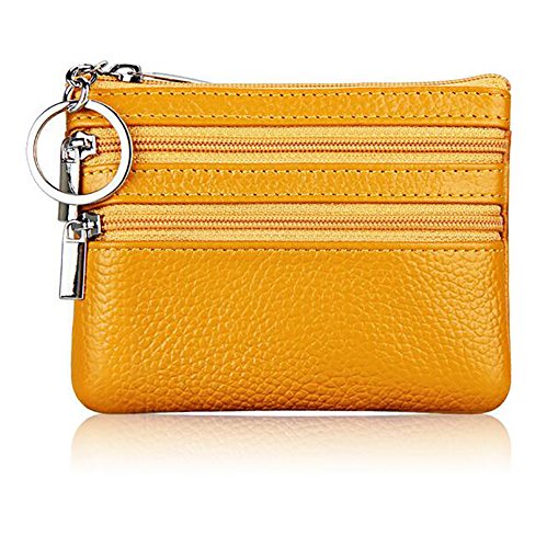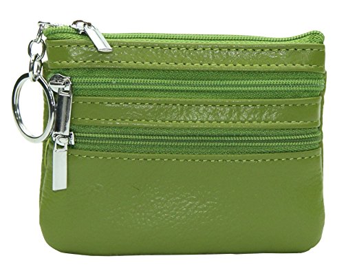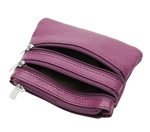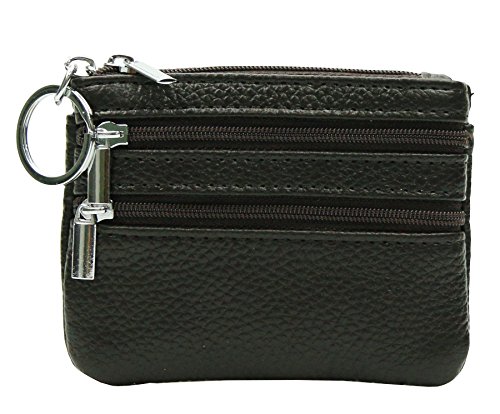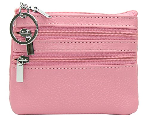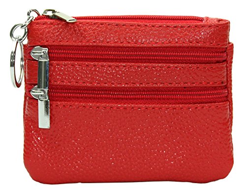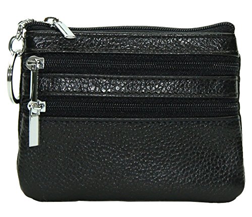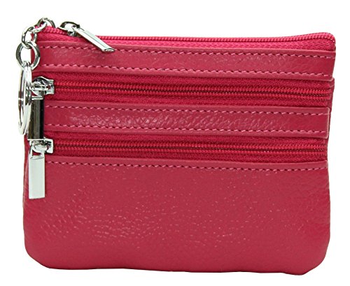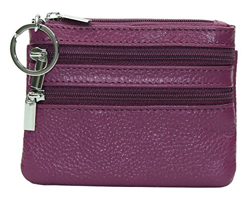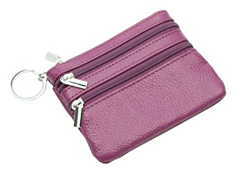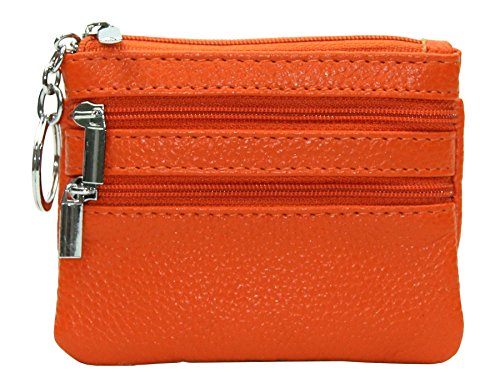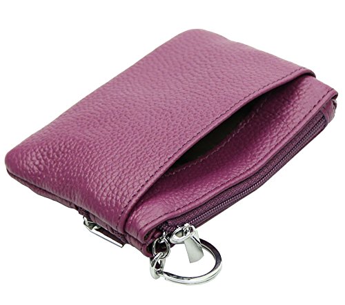 | ETIAL Womens Cowhide Leather Zipper Coin Change Purse Key Fob |