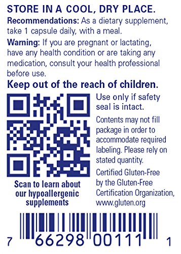 FREE FROM: Pure Encapsulations products are free from wheat, gluten, egg, peanuts, magnesium stearate, hydrogenated fat, artificial sweeteners and colors, and other unnecessary excipients. Any product containing ingredients derived from allergens, such as soy, dairy or shellfish is clearly labeled. * These statements have not been evaluated by the Food and Drug Administration. This product is not intended to diagnose, treat, cure, or prevent any disease.