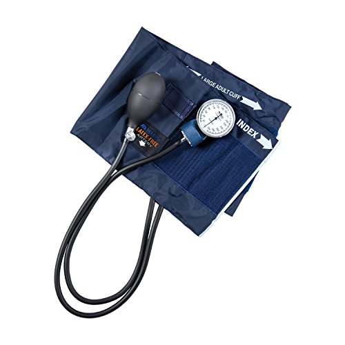 -. Title : MABIS Precision Series Aneroid Sphygmomanometer Manual Blood Pressure Monitor with Calibrated Blue Nylon Cuff and Carrying Case, Large Adult