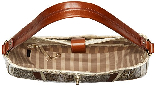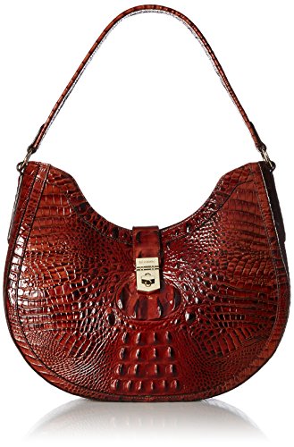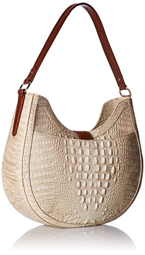 This large shoulder bag is sure to make a statement with its circular shape. A hinge lock adds elegance and function, and a full back pocket adds convenience and additional space. Inside, you will find our signature organizational features. Made for the lady who refuses to sacrifice style for size.