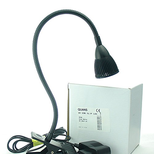 -. Title : QUANS 5W Clip on Clamp Gooseneck COB LED Desk Table Light lamp Cool White / Warm White 19inch Neck Black
