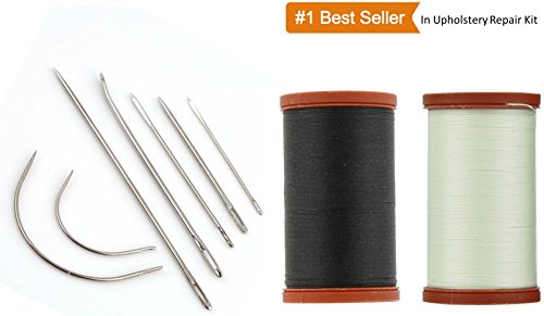 Sale! Upholstery Repair Kit! Coats & Clark Extra Strong Upholstery Thread 1 Naturel Spool, 1 Black Spool (150-Yard) Includes a Set of Heavy Duty Assorted Hand Needles, 7-count