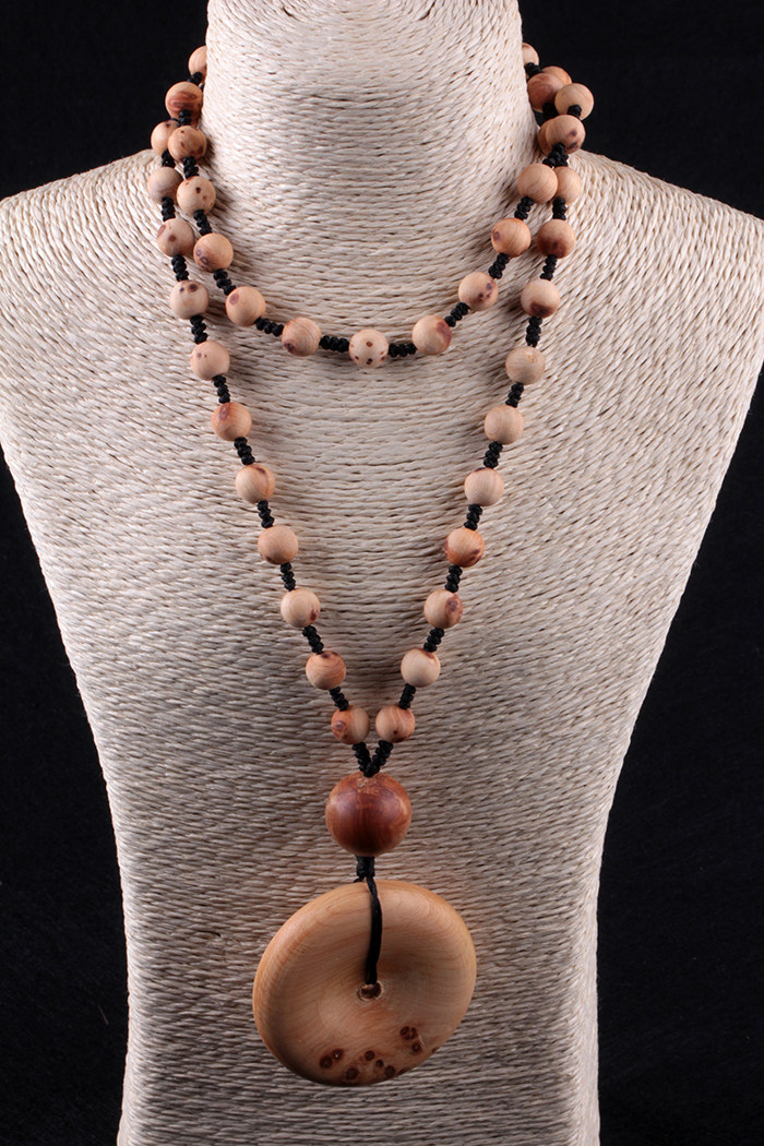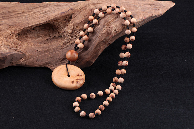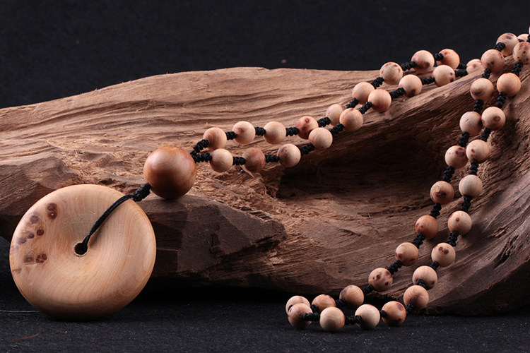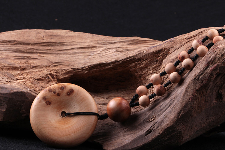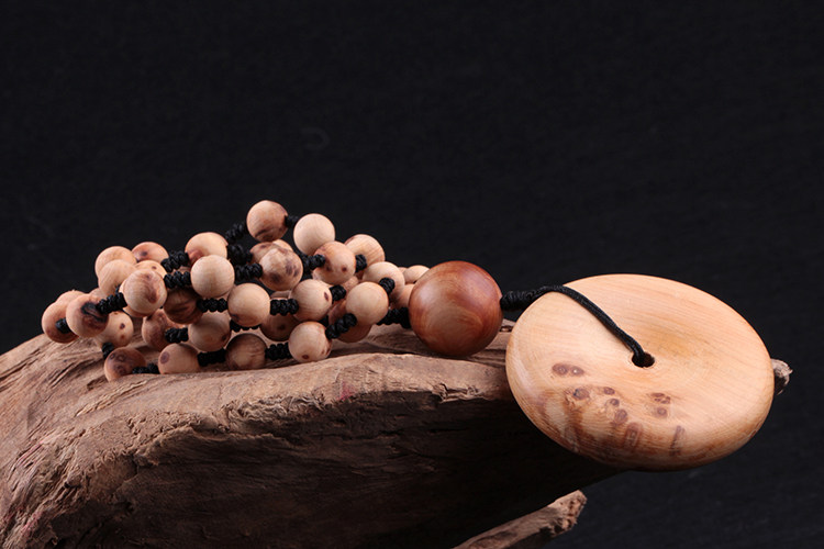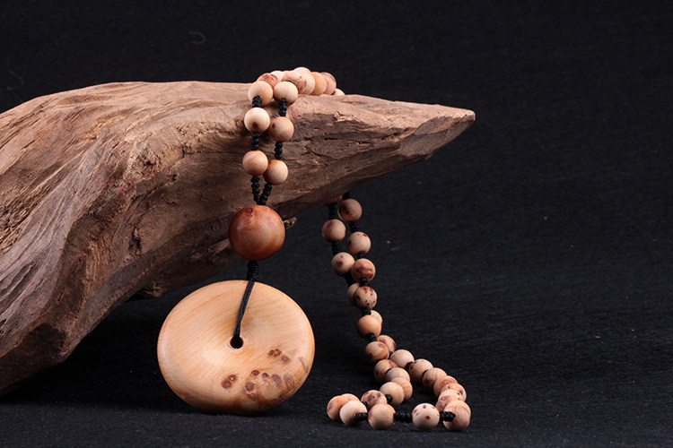 天然太行山崖柏木平安扣吊坠毛衣链挂绳挂饰挂件项链男款女士