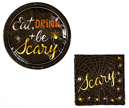 Halloween Plate and Napkin Set ~ Serves 18 (Eat, Drink and Be Scary)