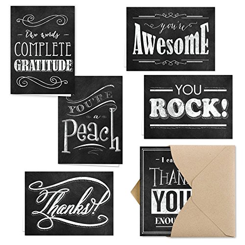 Retro Chalkboard Thank You Note Card Assortment Pack - Set of 36 cards - 6 designs blank inside - with Kraft envelopes (53874)