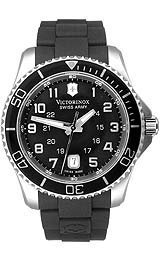 -. Binding : Watch -. Brand : Victorinox -. Color : Black/Black Rubber 1 -. Department : mens -. EAN : 0046928524549 -. Feature : Band color is black rubber, band width is 22 millimeters near case and 20 millimeters near clasp/buckle. / Bezel color is black, case is silver and circle-shaped. Case finish is satin and stainless steel. / Case thickness is 12 millimeters, case width is 43 millimeters and 47 millimeters with crown. Clasp / Buckle: Strap Buckle, dial is black and analog. / Hand color is glow-in-the-dark and movement is Swiss and Quartz. / Single time zone with 24 hour dial. Water resistance is 10 ATM. Other features are date display and screw case back. -. Label : Victorinox Swiss Army -. Manufacturer : Victorinox Swiss Army -. Model : 241435 -. MPN : 241435 -. PackageQuantity : 1 -. PartNumber : 241435 -. ProductGroup : Watch -. ProductTypeName : WATCH -. Publisher : Victorinox Swiss Army -. Studio : Victorinox Swiss Army -. Title : Victorinox Swiss Army Black Rubber Band Black Dial - Men's Watch 241435 -. UPC : 046928524549