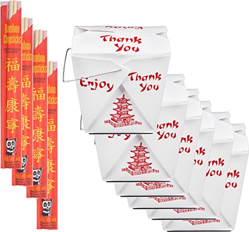 Asian/Chinese Party pack, 50 Kit Premium Quality To-Go Container + 50 Chop Sticks Bamboo