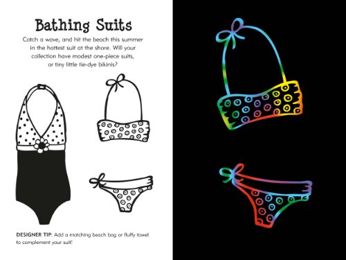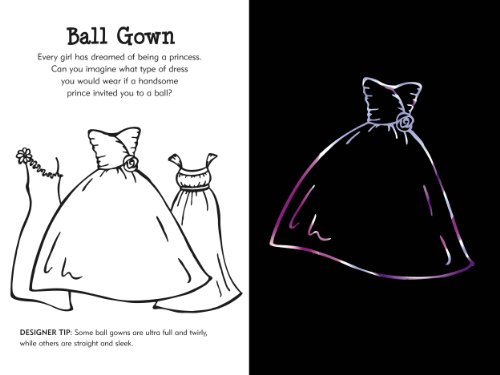 - Feature : 10 black-coated gold or silver glitter pages / 10 black-coated rainbow swirl pages / 20 drawings of clothing and accessories / 20 extra pages for your own sketches / Wooden stylus for drawing