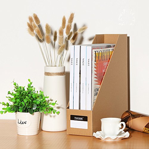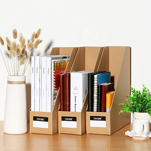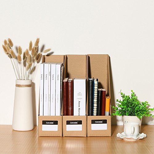 TIANSE Magazine File Book Holder Storage Shelf Desk Organizer Box Kraft Paper for Office Home(Pack of 3)