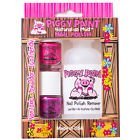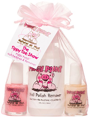 Includes 1 bottle of 2 oz odorless nail polish remover and two mini bottles of Piggy Paint nontoxic, low-to-no odor fingernail polish.