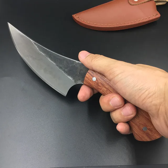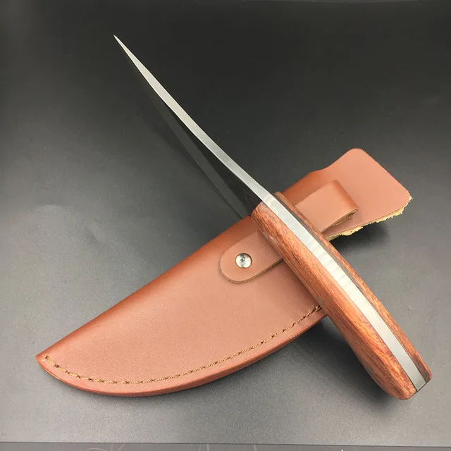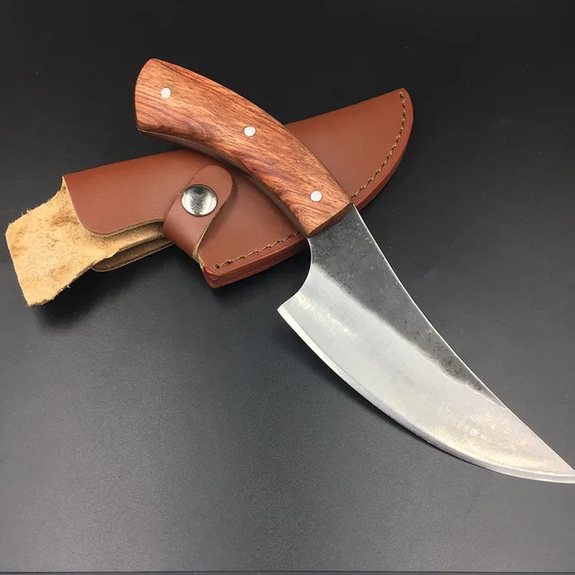 | [해외] Sharp 높은 탄소 강철 손 고정 사냥 칼 58hrc 로즈 우드 핸들 생존 캠핑 전술 구조 나이프 |